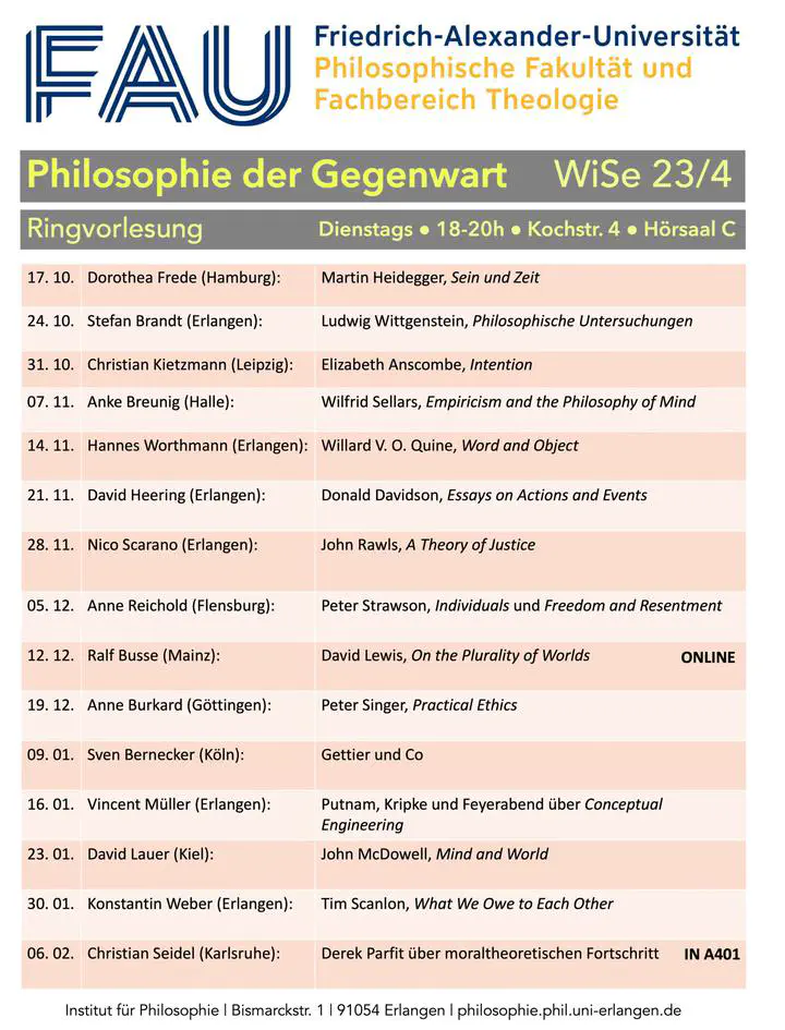 Lecture series “Philosophie der Gegenwart (Philosophy of the Present)” of the Institute of Philosophy